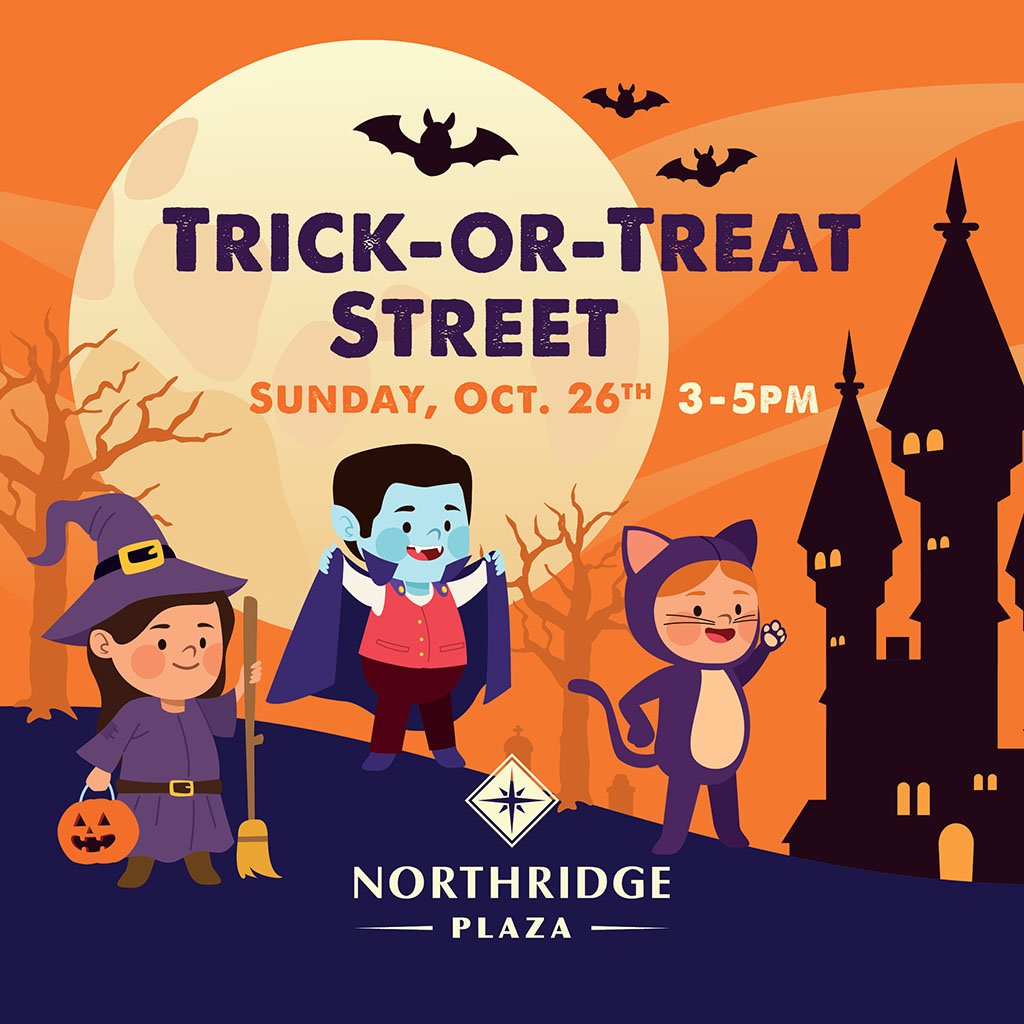 It’s time for Trick-or-Treat Street at Northridge Plaza on Sunday, October 26th from 3–5 pm. Bring your little ghosts and goblins for a family-friendly afternoon of fun. 📸 Plus, Bridget M Photography will be there to capture your kids’ amazing costumes!